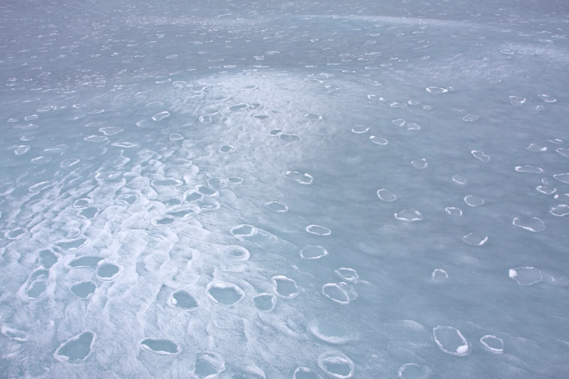 The barely frozen ocean surface is often called "grease ice" because of it's oily appearance.