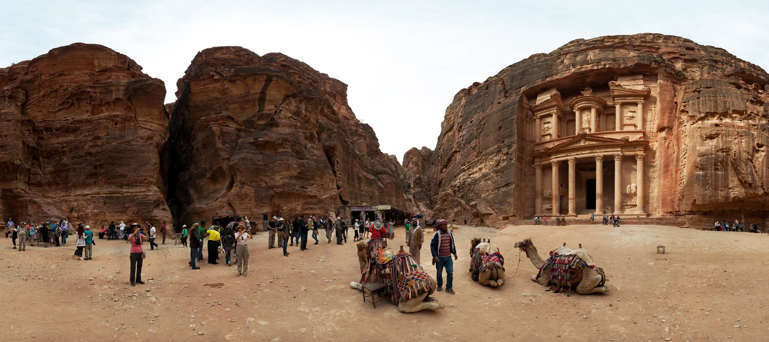 Standing among tourists by the Treasury in Petra, Jordan.  (  Interactive Petra Tour  )